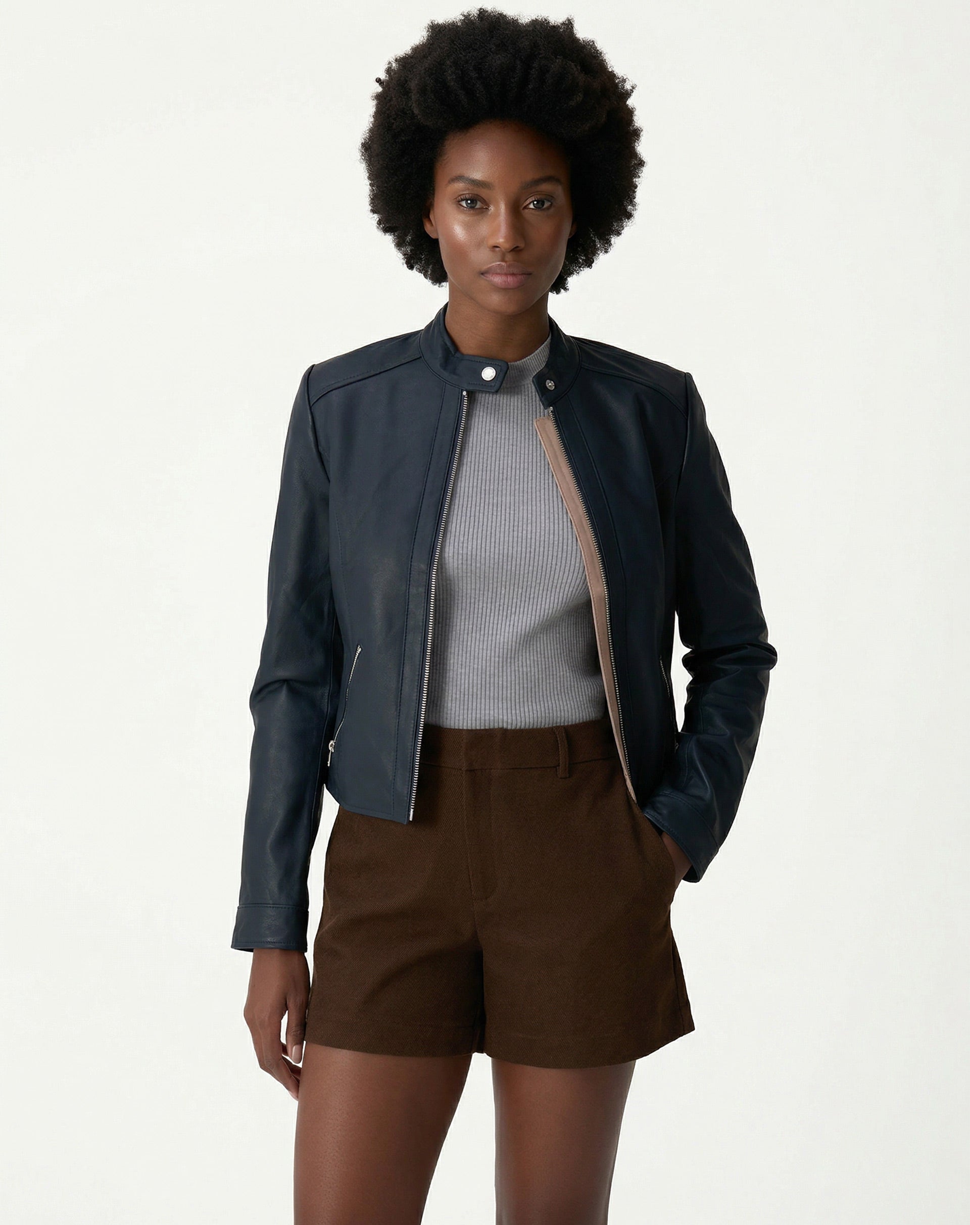Jaqueta Couro Pelica Essential - Azul Marinho