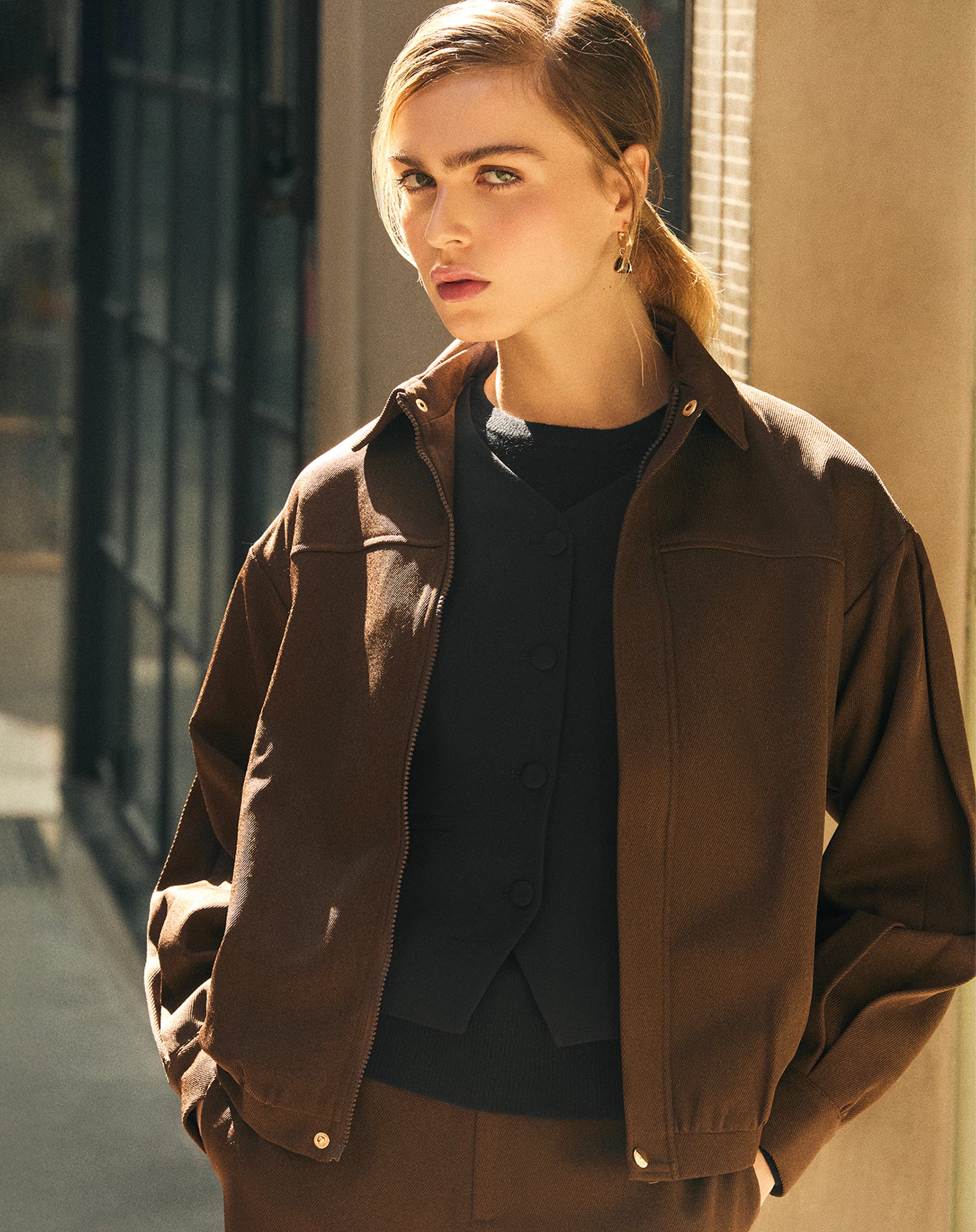 CASACO COM PUNHO LARGO - MARROM