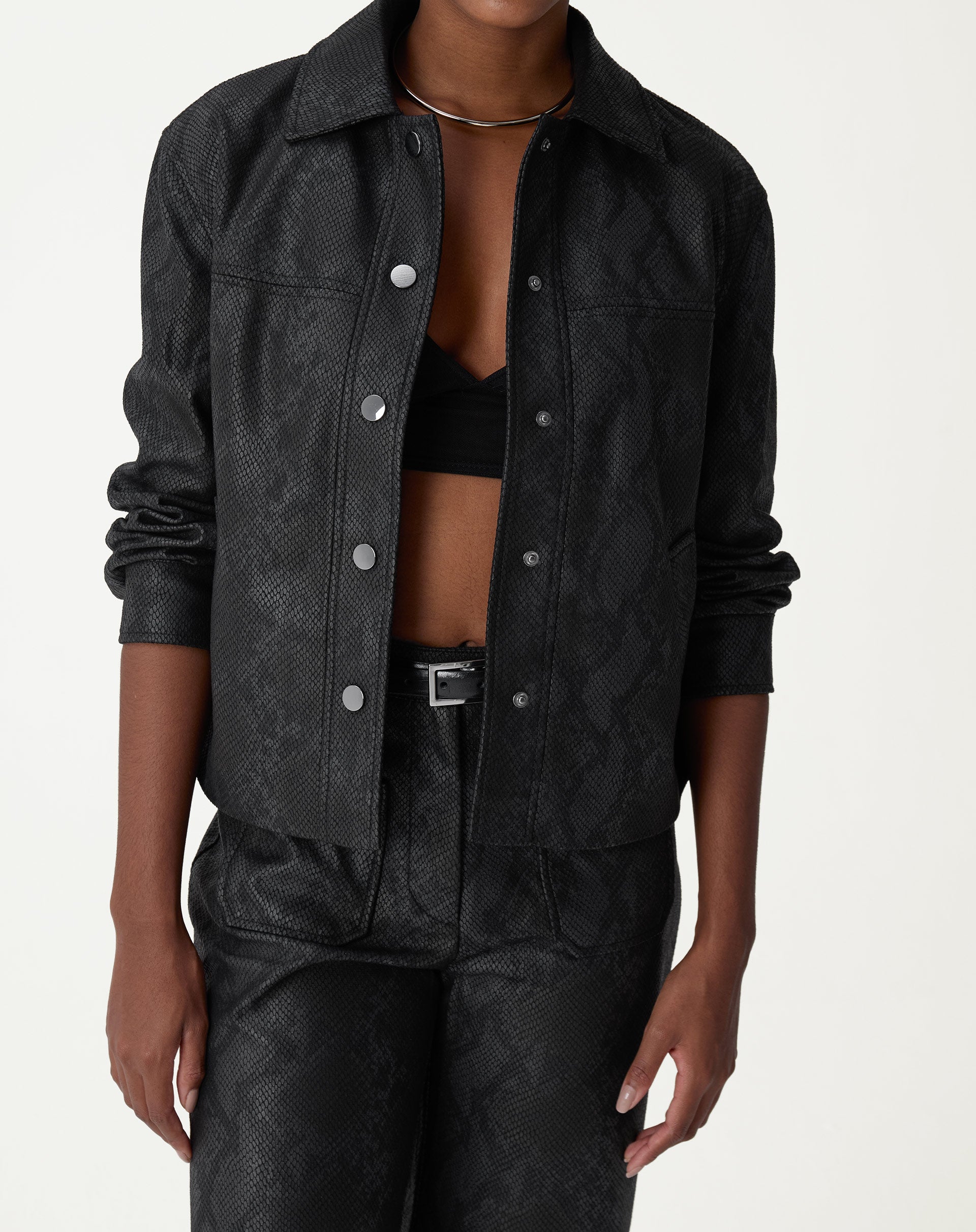 JAQUETA QUADRADA COBRA PU - PRETO