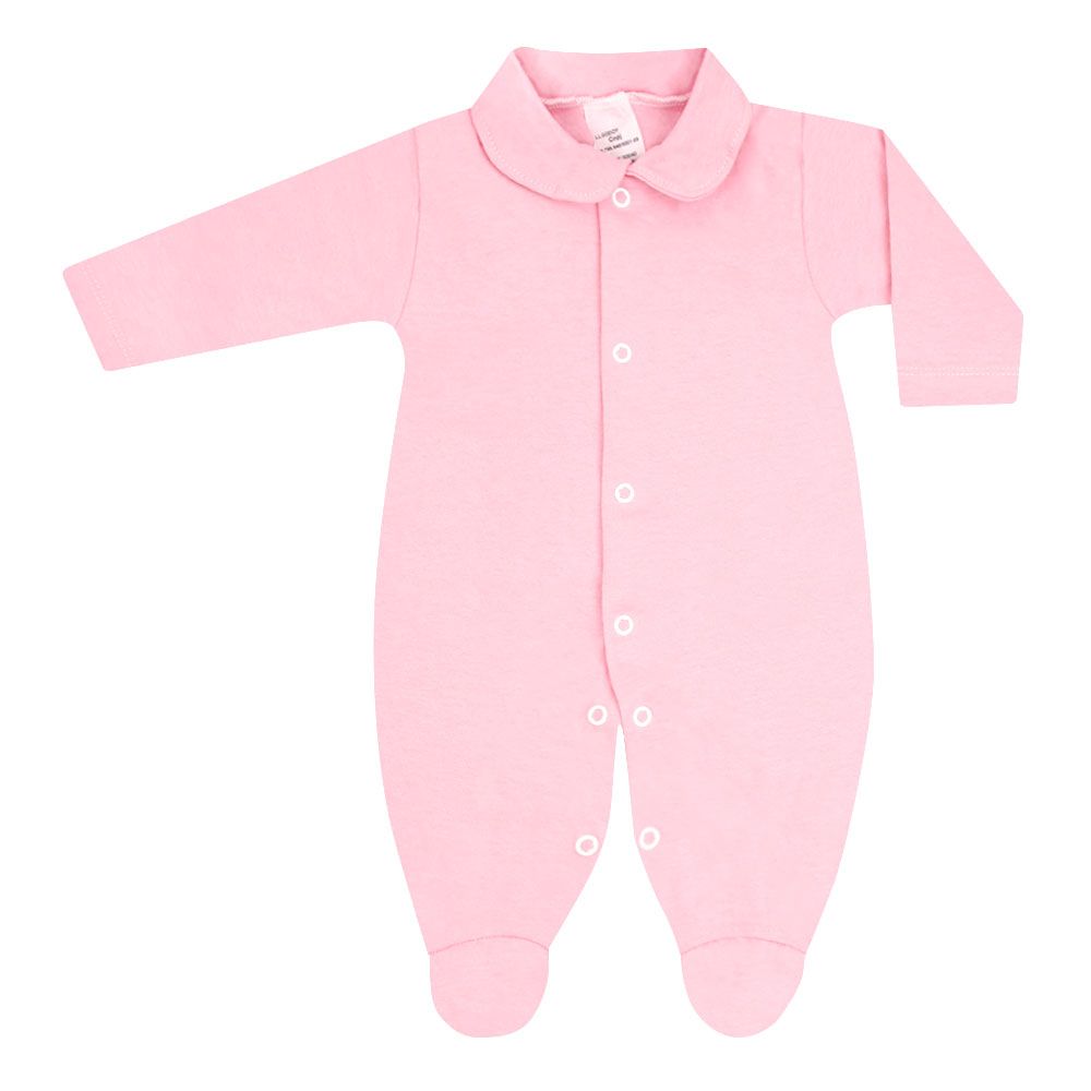 Macacão Bebê Manga Longa Meia Malha Liso Rosa Com Pé (RN/P/M/G) - Godoy