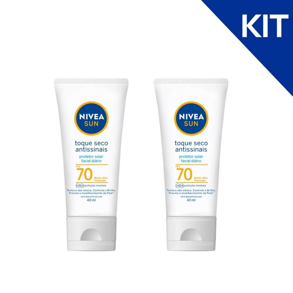 KIT NIVEA SUN Protetor Solar Facial Toque Seco Antissinais Fps70 40ml - 2 Unidades