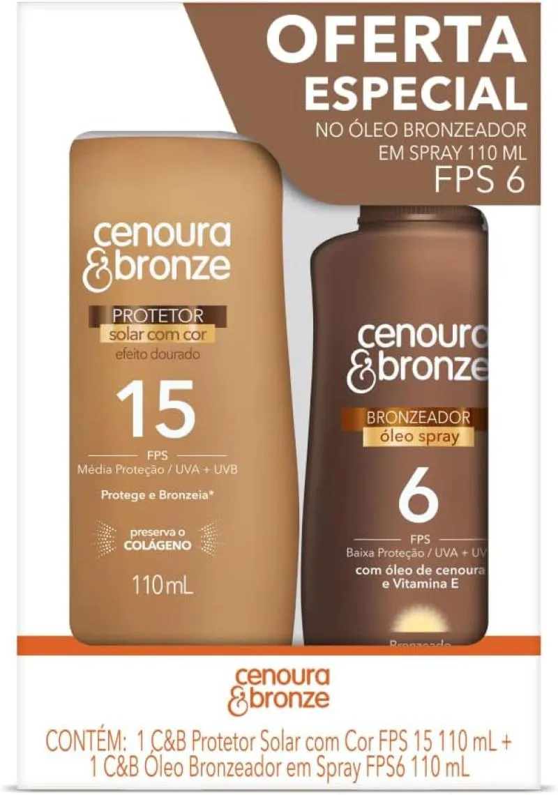 Kit Protetor Solar Cenoura e Bronze FPS 30 110ml e Protetor Solar Facial FPS 50 50g Oferta Especial