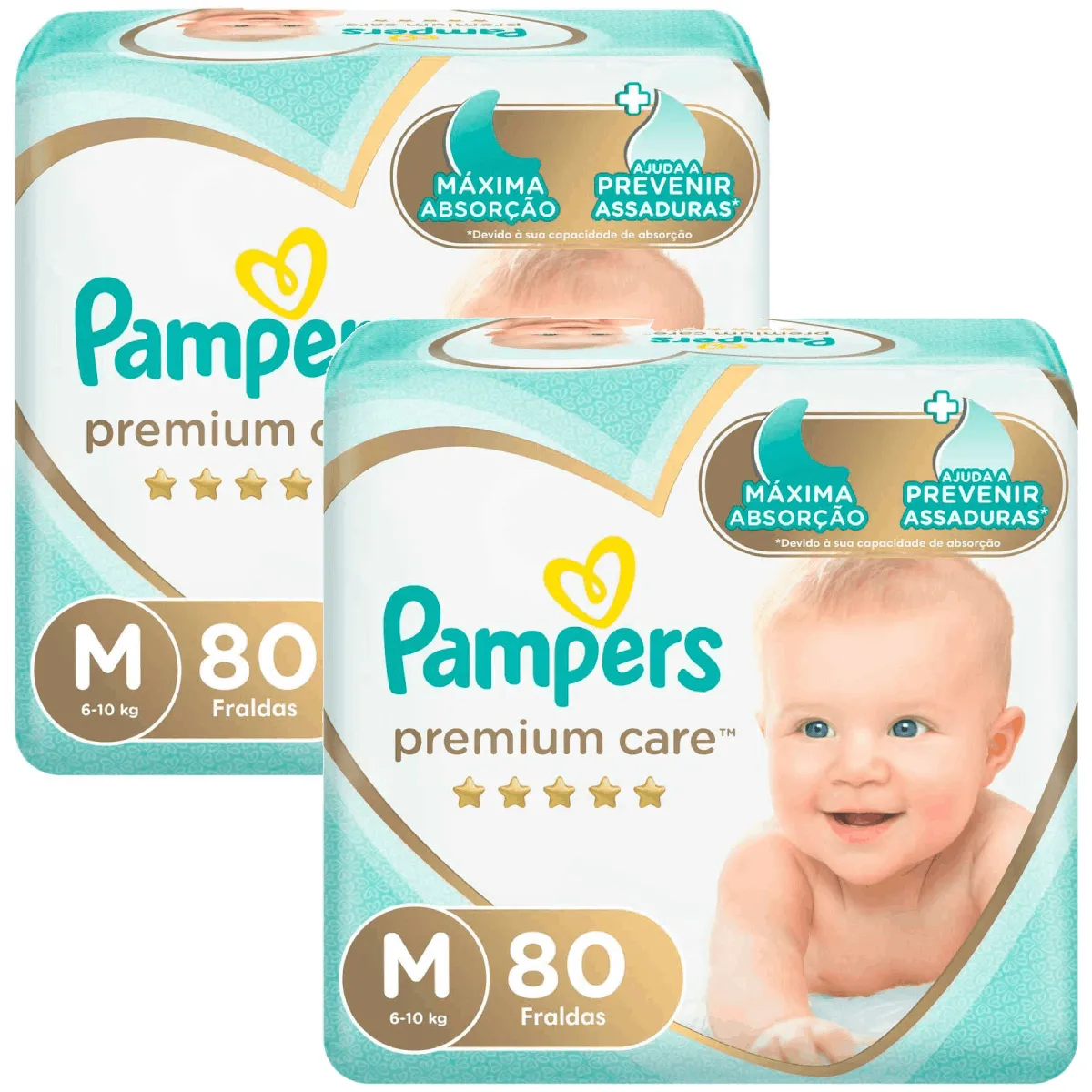 Kit Fralda Pampers Premium Care M 2 Pacotes com 80 unidades cada