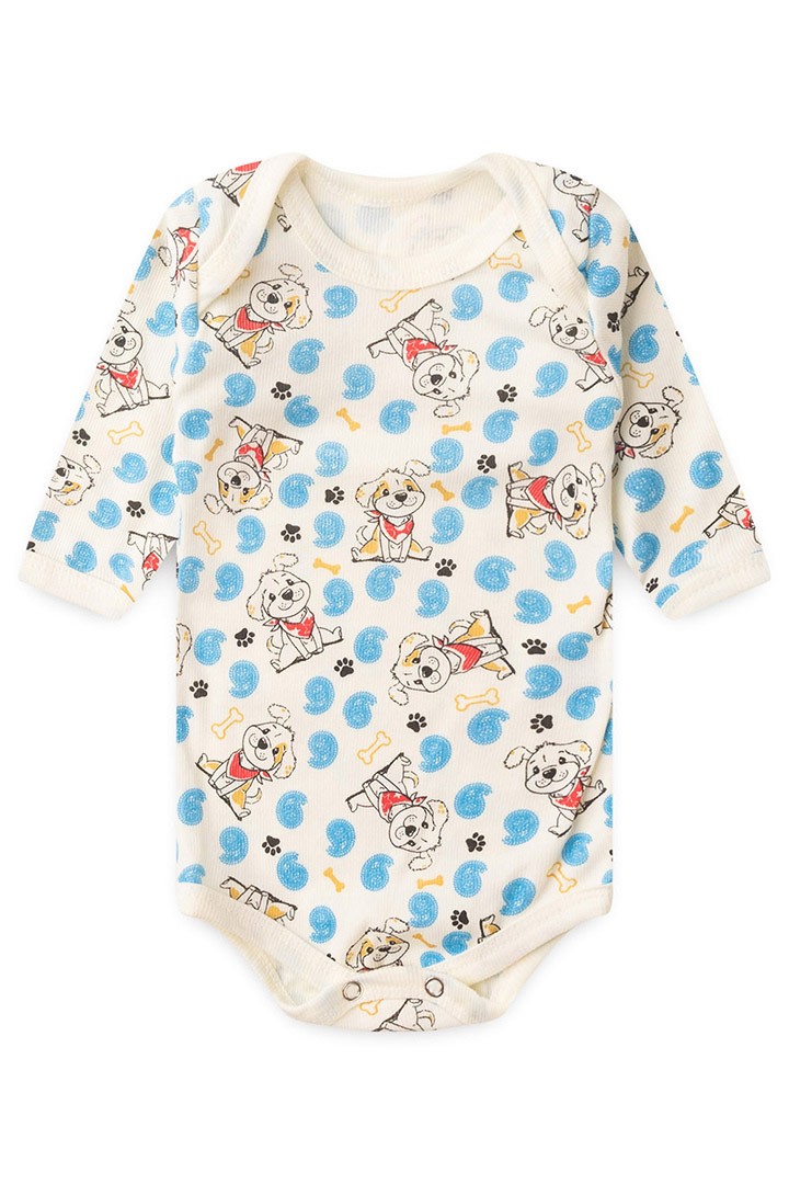 Body Bebê Manga Longa Canelado Creme Doguinho (RN/P/M/G) - Top Chot