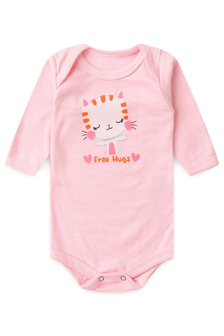 Body Bebê Feminino Manga Longa Canelado Rosa Gatinha Abraços (M/G) - Top Chot