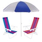 Kit 2 Unidades Cadeira de Praia + Guarda-sol Branco/Azul Mor Mor e Lazer