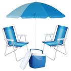 Kit Praia Guarda Sol 1,50 M + 2 Cadeiras de Praia + Caixa Termica Azul Mor e Lazer