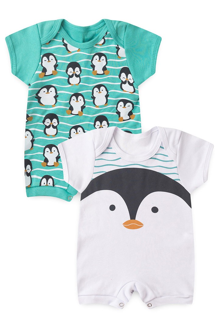 Kit Bebê Banho de Sol Suedine Branco e Verde Água Pinguim (P/M/G) - Bebê Fofuxo