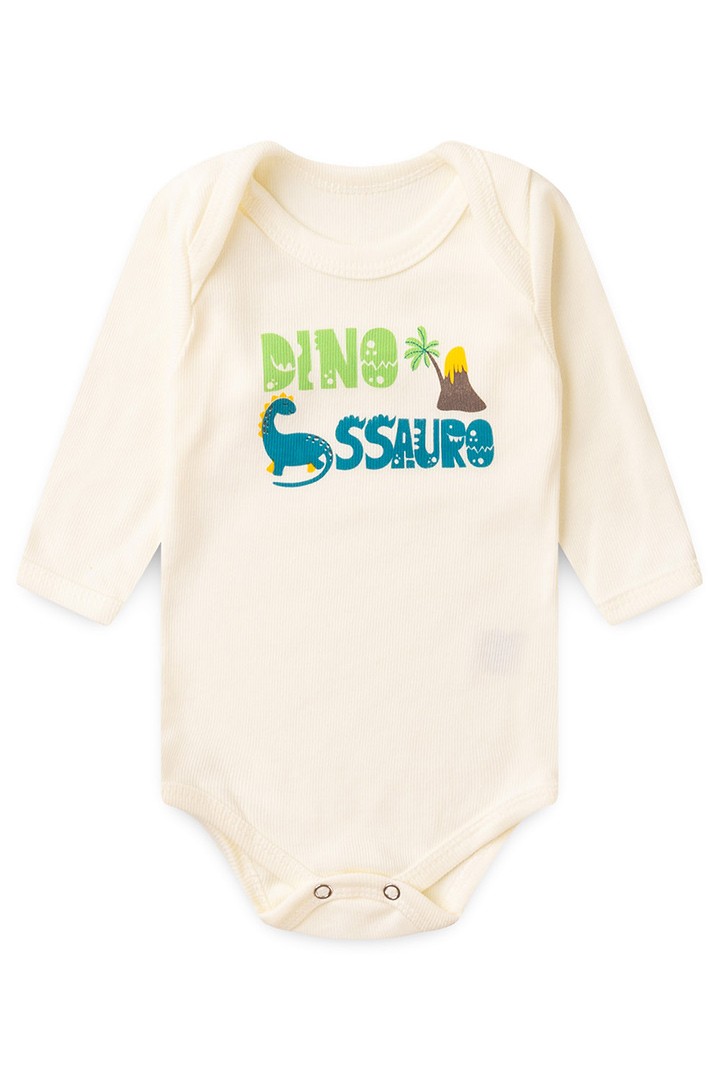 Body Bebê Masculino Manga Longa Canelado Creme Dinossauro (RN/P/M/G) - Top Chot