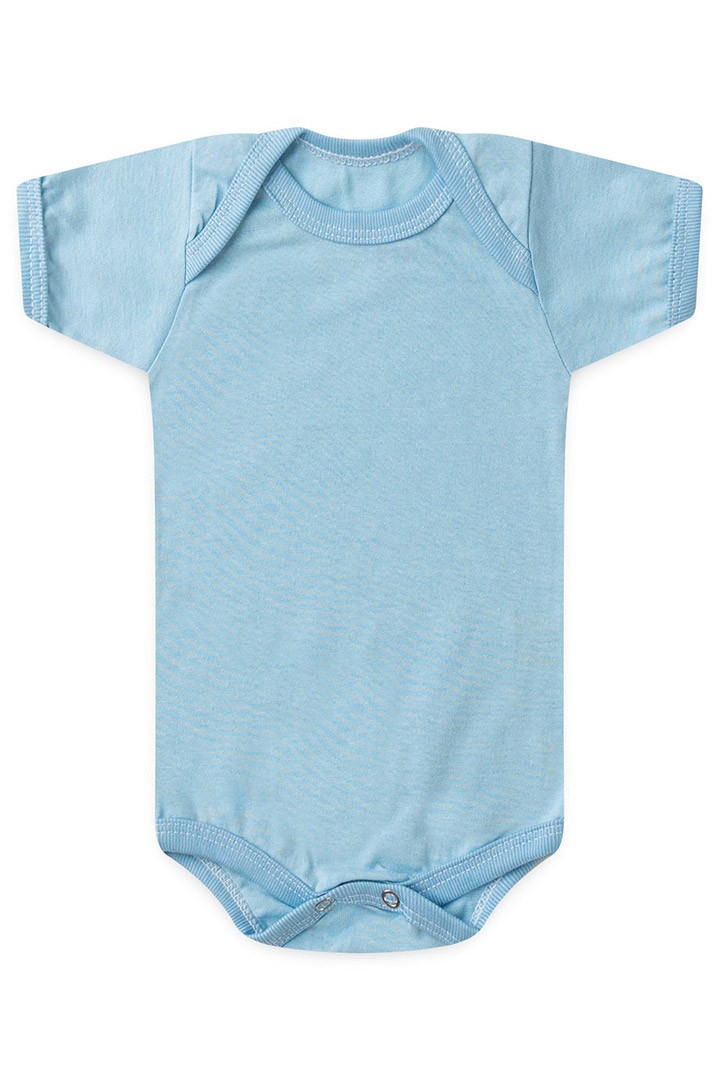 Body Bebê Masculino Meia Malha Azul Liso Manga Curta (RN/P/M/G) - Bebê Fofuxo