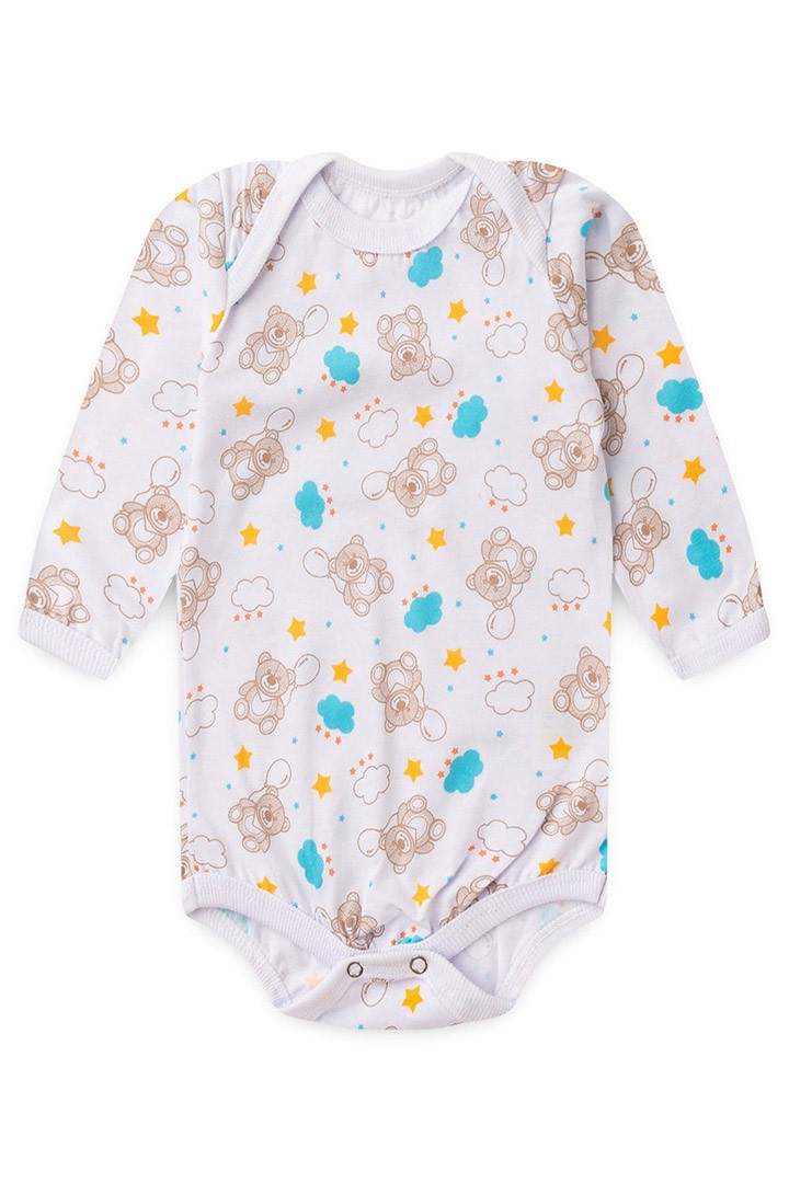 Body Bebê Masculino Manga Longa Meia Malha Branco Ursinho Balões (RN/P/M/G) - Top Chot