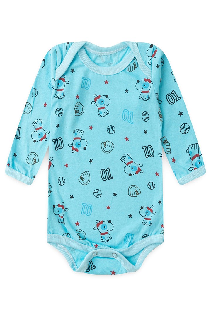 Body Bebê Masculino Manga Longa Meia Malha Turquesa Beisebol (RN/P/M/G) - Top Chot