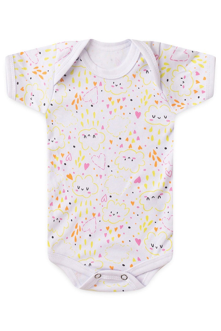 Body Bebê Feminino Canelado Manga Curta Branco Nuvem Coração (RN/P/M/G) - Top Chot