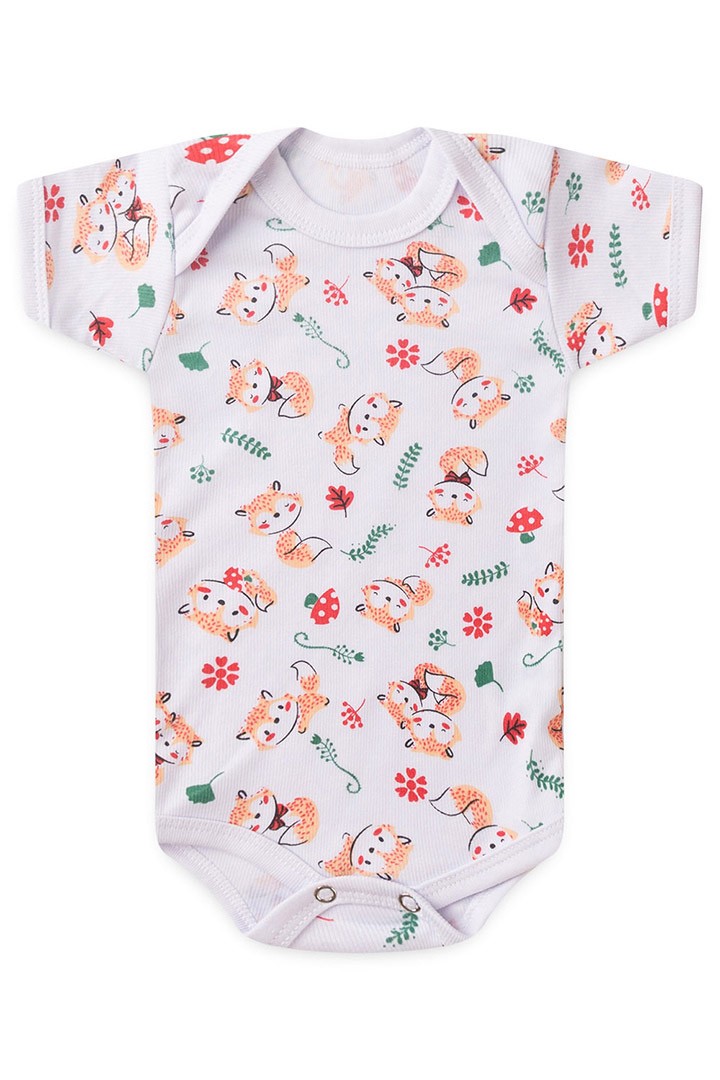 Body Bebê Canelado Manga Curta Branco Raposinha (RN/P/M/G) para Bebê