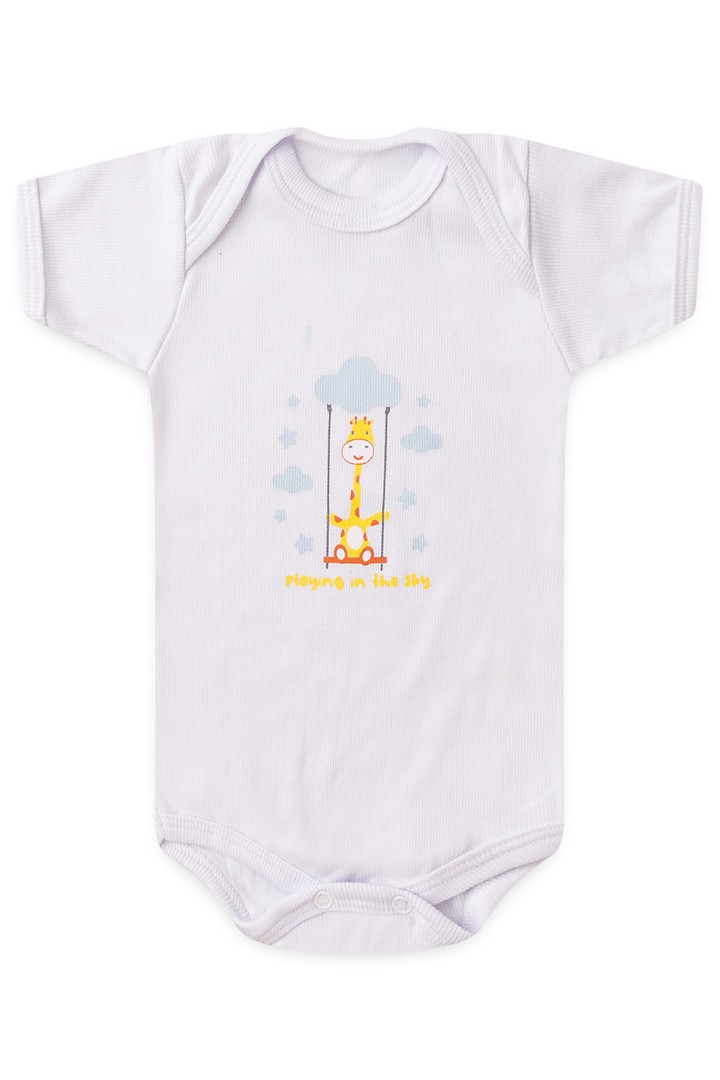 Body Bebê Manga Curta Canelado Branco Girafa Nuvem (RN/P/M/G) - Top Chot