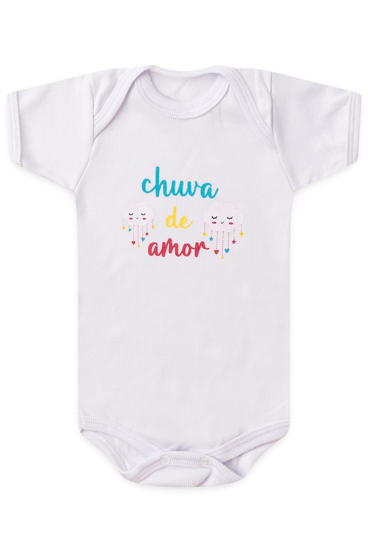 Body Bebê Manga Curta Canelado Branco Chuva de Amor (RN/P/M/G) - Top Chot