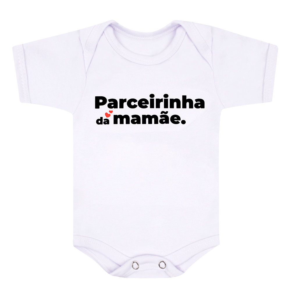 Body Bebê Feminino Manga Curta Suedine Branco Parceirinha da Mamãe Corações (RN/P/M/G) - Bebê Fofuxo