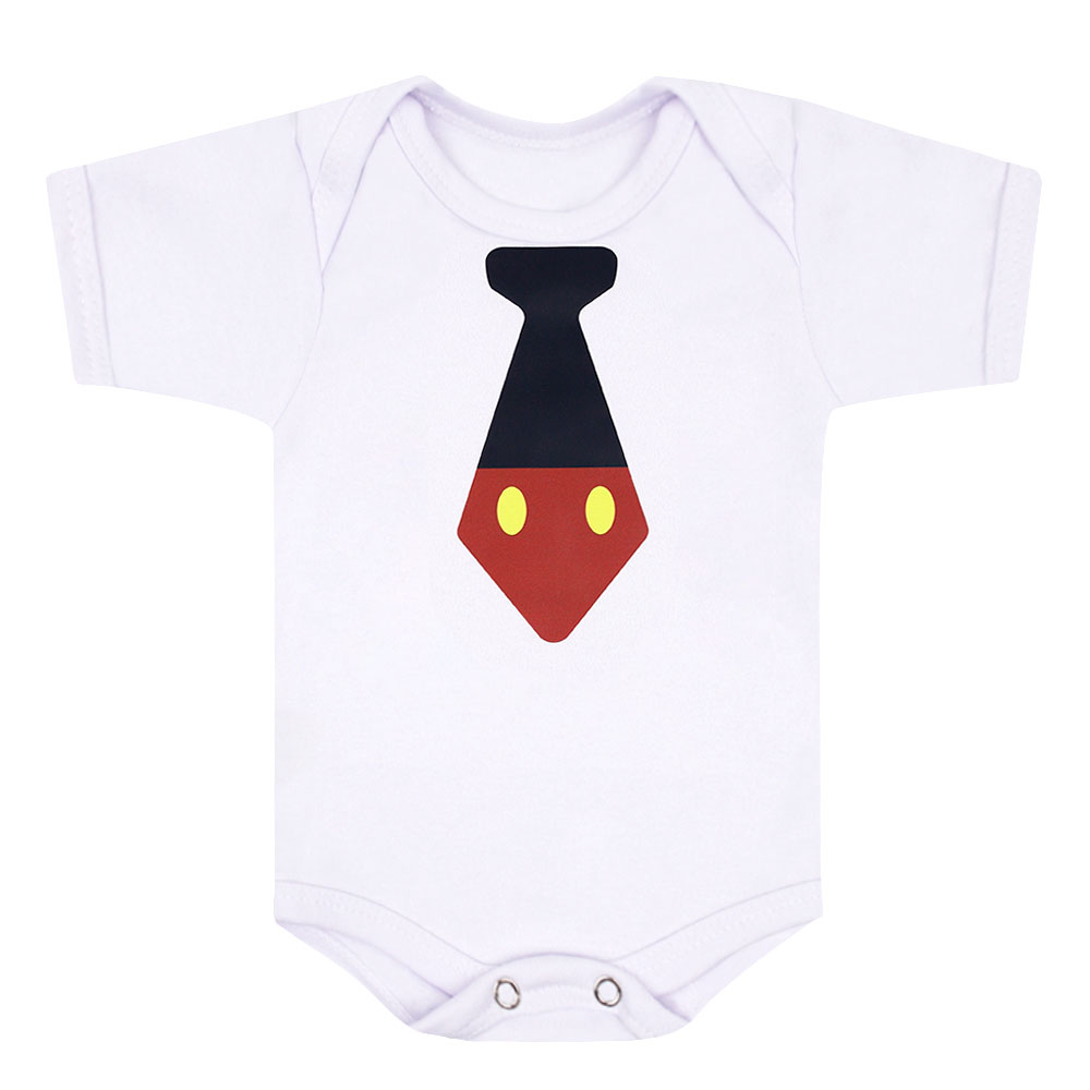 Body Bebê Masculino Manga Curta Suedine Branco Gravatinha (RN/P/M/G) - Bebê Fofuxo