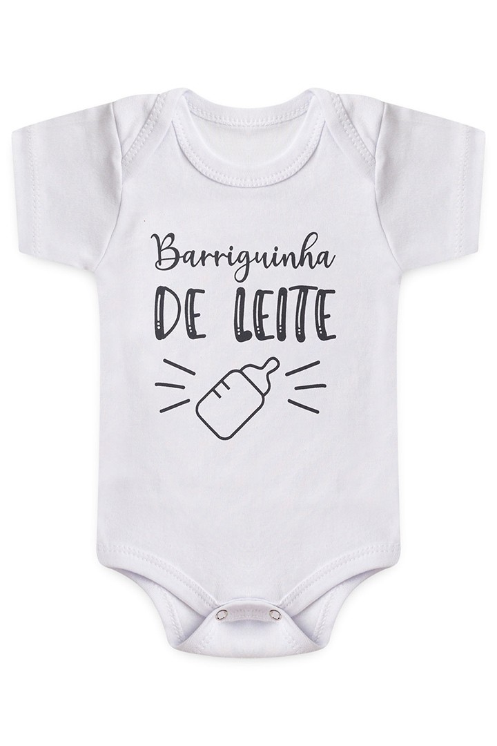 Body Bebê Manga Curta Suedine Branco Barriguinha de Leite (RN/P/M/G) - Bebê Fofuxo