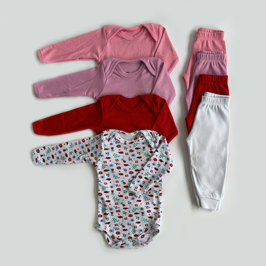 Kit 6 Peças Conjunto Body Manga Longa Canelado + Mijão Liso Canelado Bebê Menino e Menina Barato