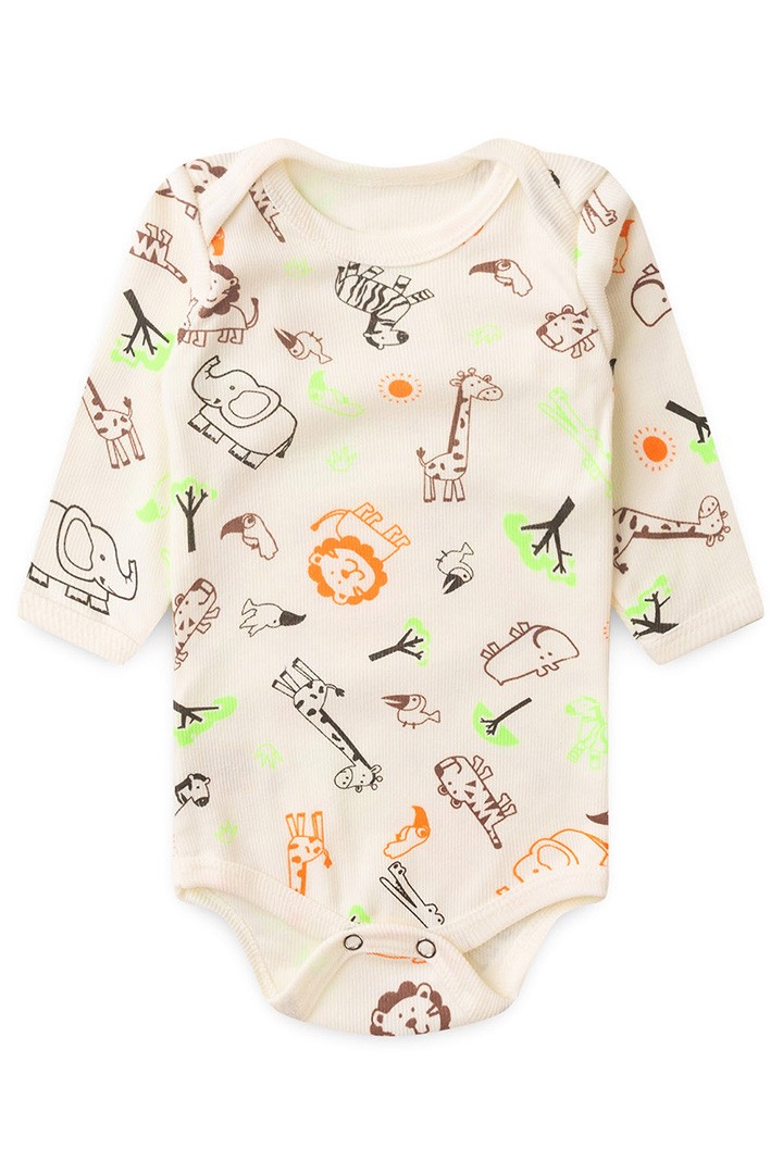 Body Bebê Manga Longa Canelado Creme Safari (RN/P/M/G) - Top Chot