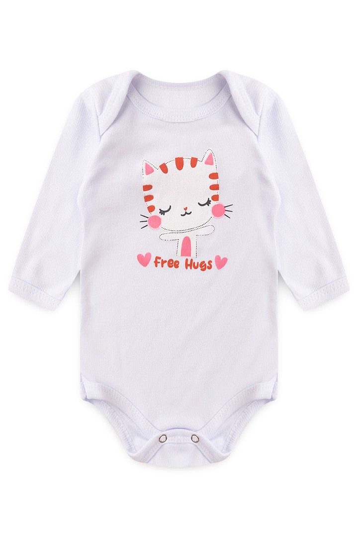 Body Bebê Feminino Manga Longa Canelado Branco Gatinha Abraços (RN/P/M/G) - Top Chot