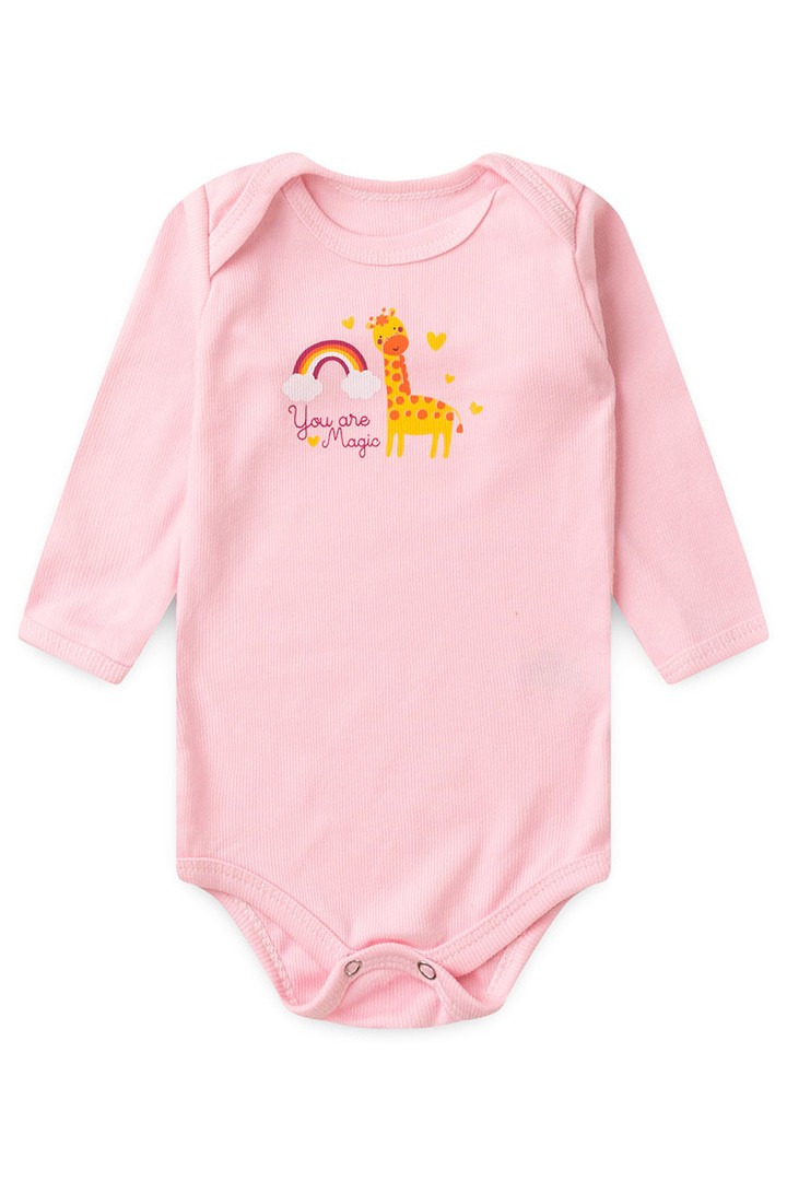 Body Bebê Feminino Manga Longa Canelado Rosa Girafinha Mágica (RN/P) - Top Chot