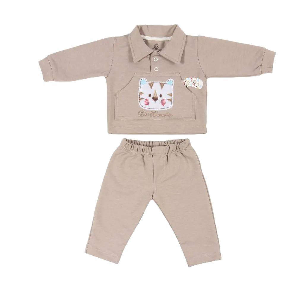 Conjunto Jardineira Moletinho e Body Gola Alta Bebê Menino Inverno Manga Longa Suedine Suave 100% Algodão 2Pçs Bebê Brin