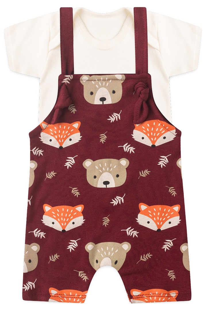 Conjunto Bebê Algodão Body Off White e Jardineira Bordô Raposinha (P/M/G/1) - Bebê Fofuxo