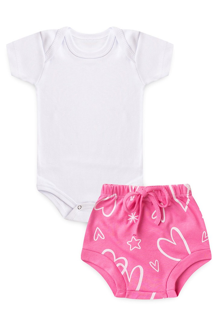 Conjunto Bebê Feminino Body Branco e Tapa Fralda Rosa Coraçãozinho (P/M/G/GG) - Bebê Fofuxo
