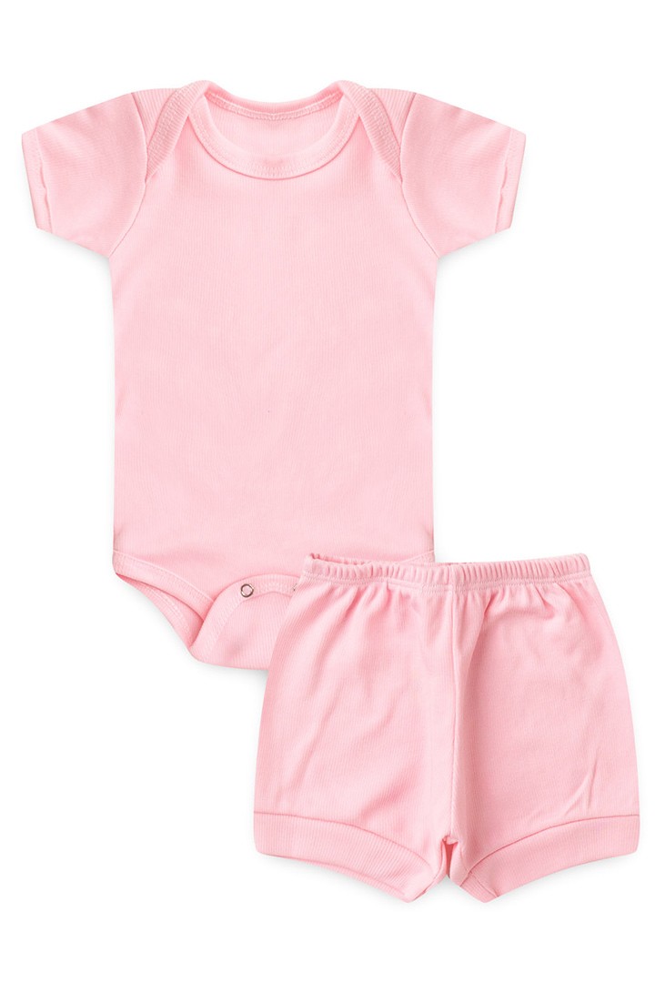 Conjunto Bebê Feminino Body Curto e Tapa Fralda Canelado Rosa (P/M/G) - Top Chot
