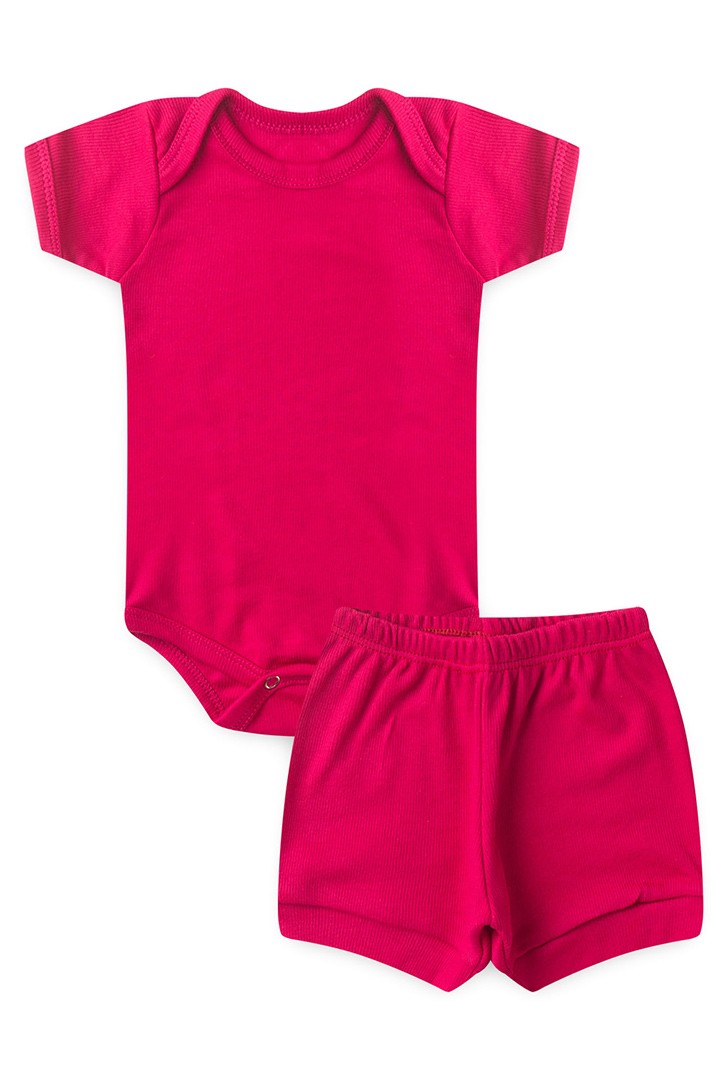 Conjunto Bebê Feminino Body Curto e Tapa Fralda Canelado Pink (P/M/G) - Top Chot