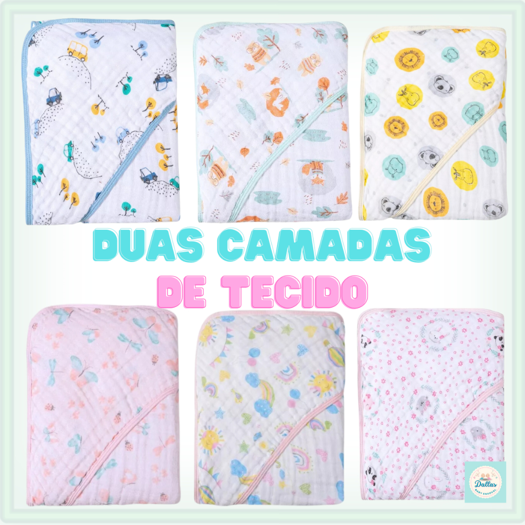 Toalha de Banho Fralda Soft com Capuz para Bebê 2 Camadas Papi Karinho