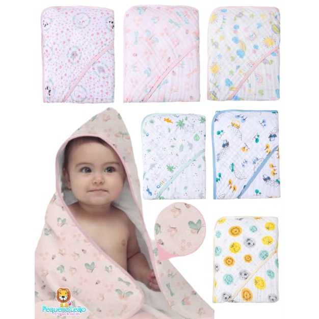 TOALHÃO DE BANHO PAPI SOFT PREMIUM TOALHA FRALDA COM CAPUZ ESTAMPADA BEBÊ INFANTIL