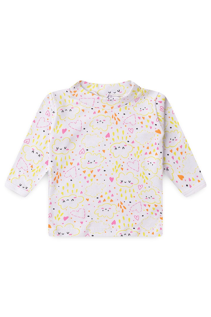 Camiseta Bebê Feminina Canelada Manga Longa Branca Nuvem Coração (1/2/3) - Top Chot