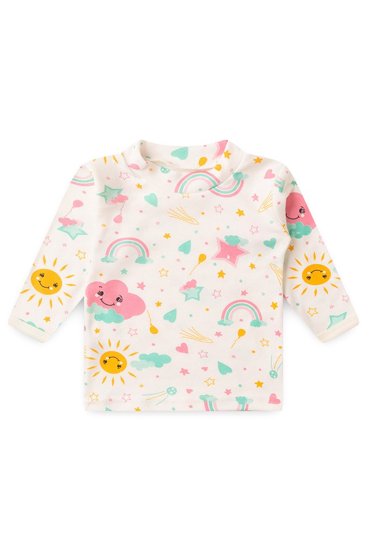 Camiseta Bebê Feminina Canelada Manga Longa Off White Solzinho (1/2/3) - Top Chot