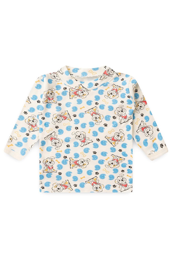 Camiseta Bebê Canelada Manga Longa Creme Doguinho (1/2/3) - Top Chot