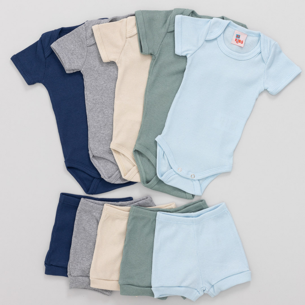 Kit 10 Peças Bebê Verão Canelado Manga Curta 7714-C1