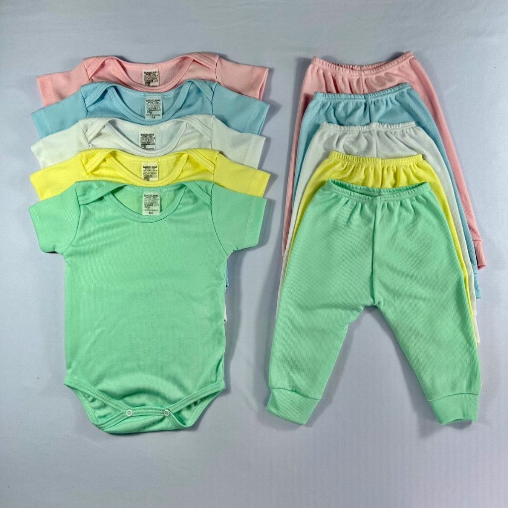 Kit Com 10 - Conjunto de Bebe BODY MANGA CURTA + MIJÃO LISO Malha Canelada Menino E Menina