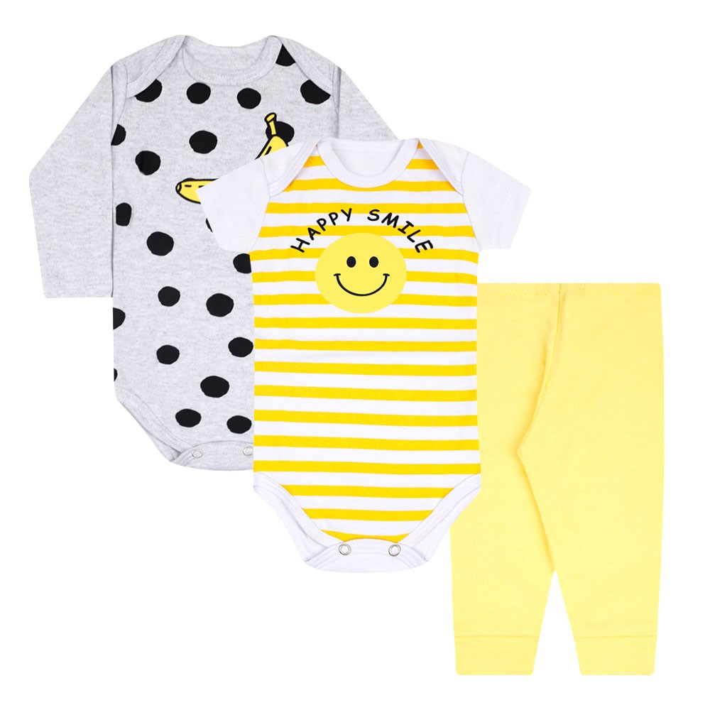 Kit Bebê 3 Peças Suedine Bodies Mescla e Mijão Amarelo Banana (P/M/G/GG) - Orango Kids