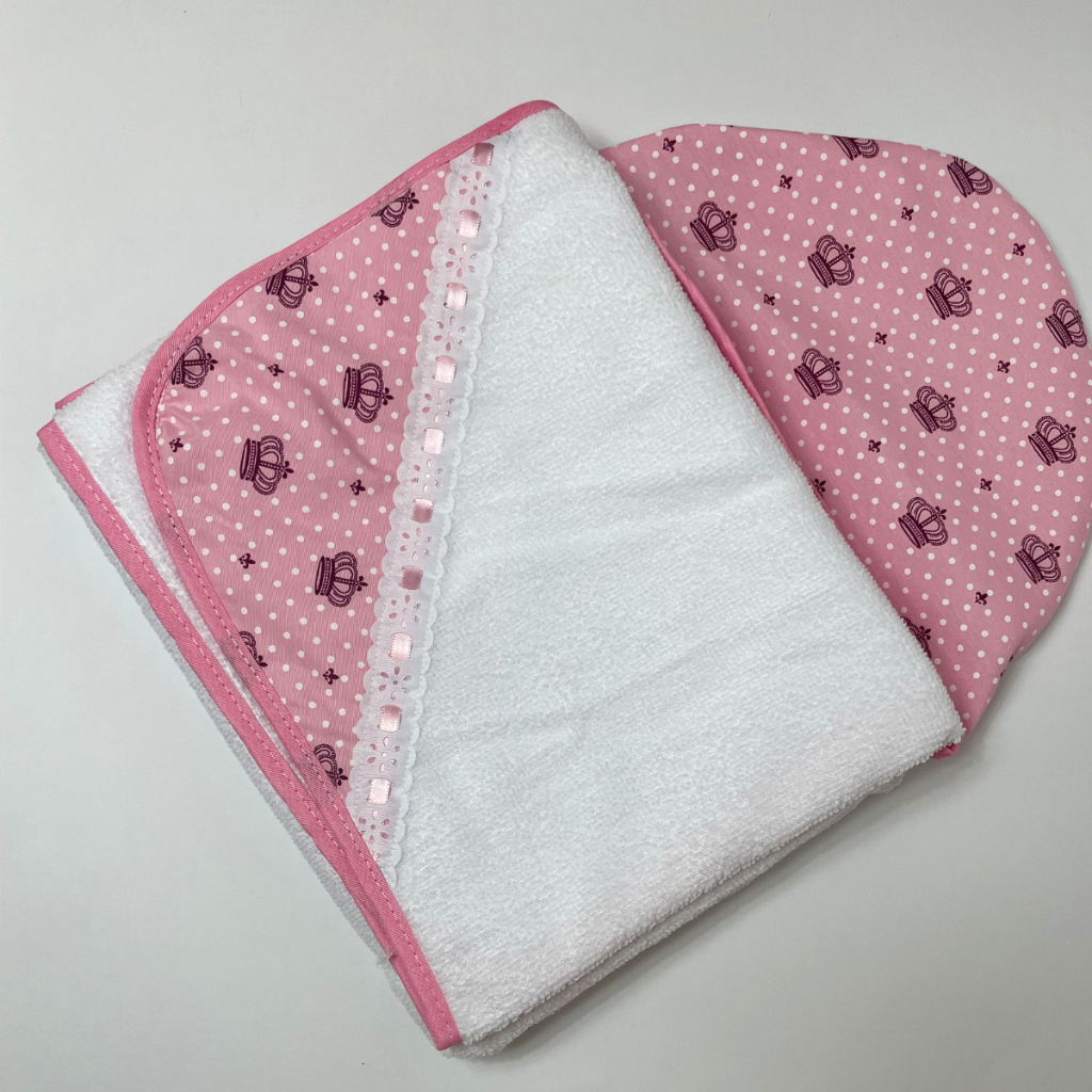 Toalha de Banho Fralda com Capuz Para Bebê Felpuda Atoalhada Infantil Menina Coroa Rosa