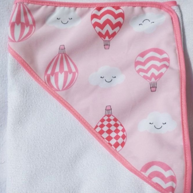Toalha de Banho Bebe com Capuz Estampado Bebê - Lançamento bebê - Balão Rosa