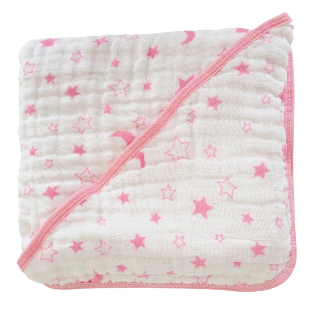 Toalha de Banho Bebê Fralda Soft com Capuz 100% Algodão Estrela rosa