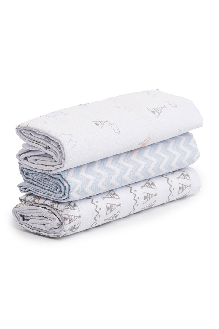 Kit Cueiro Bebê Flanelado Branco Masculino Raposinha, Listras Zig-Zag e Cabanas (3 unidades) - PAPI
