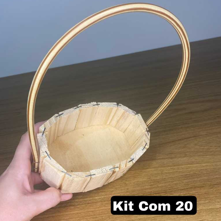 Kit 20 cesta de madeira Oval Alça de fibra cesta de pascoa presente dia das mães namorados fraldeira