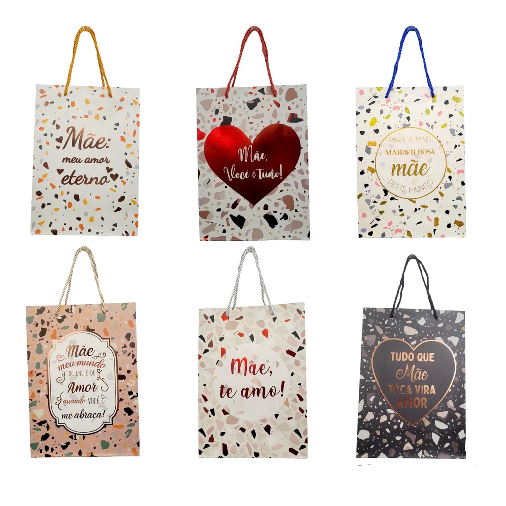 Embalagem Presente Dia das Mães Sacola de Papel 27cm Kit 6un