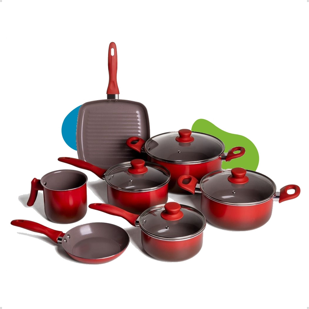 Jogo De Panelas Ceramic Life Brinox Magnólia 8 Peças Vermelho