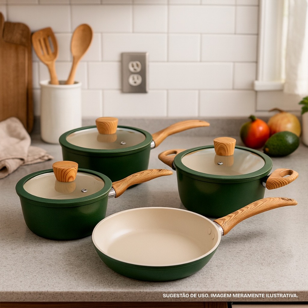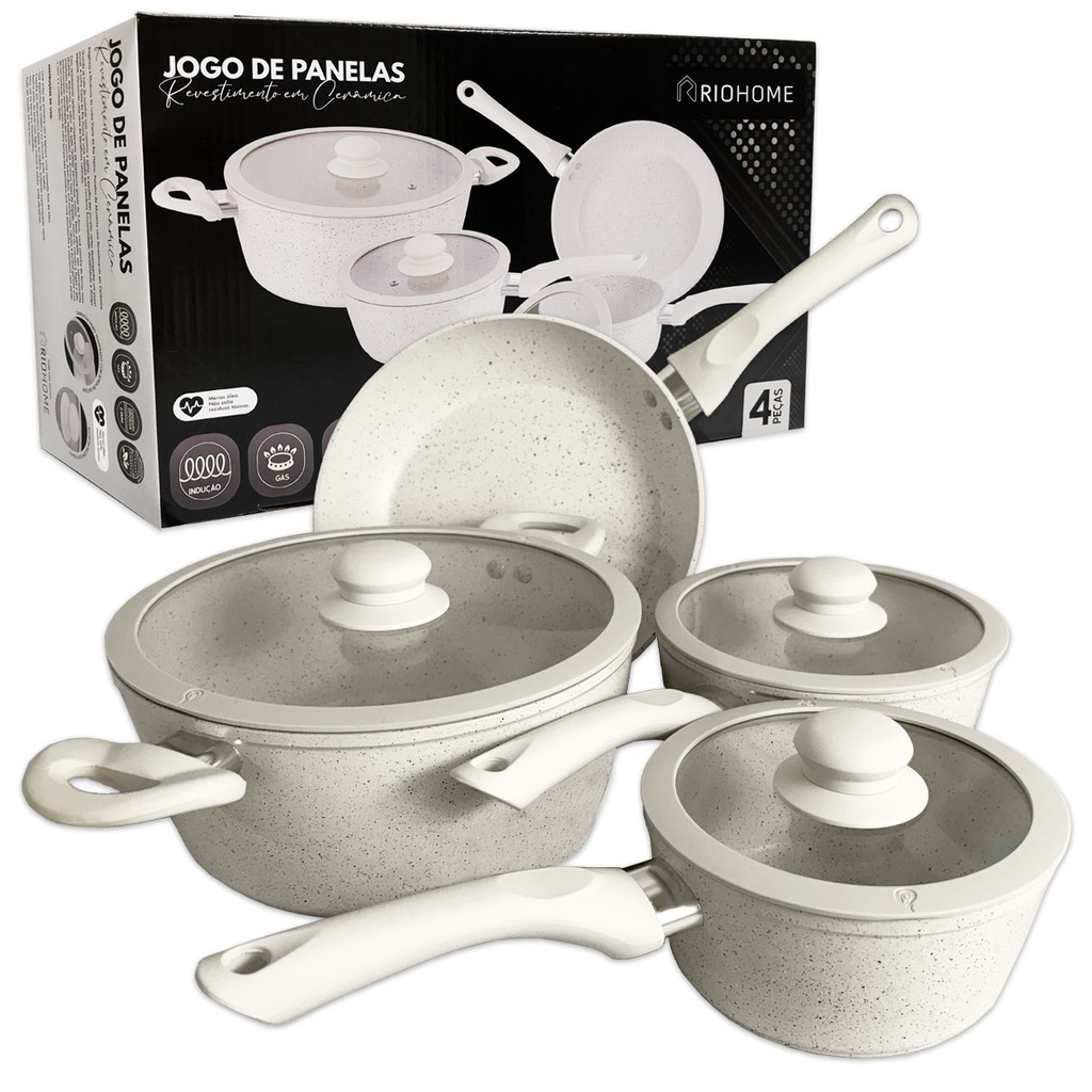 Jogo de Panelas 4 Peças Antiaderente Cerâmica Compatível Fogão Gás e Indução