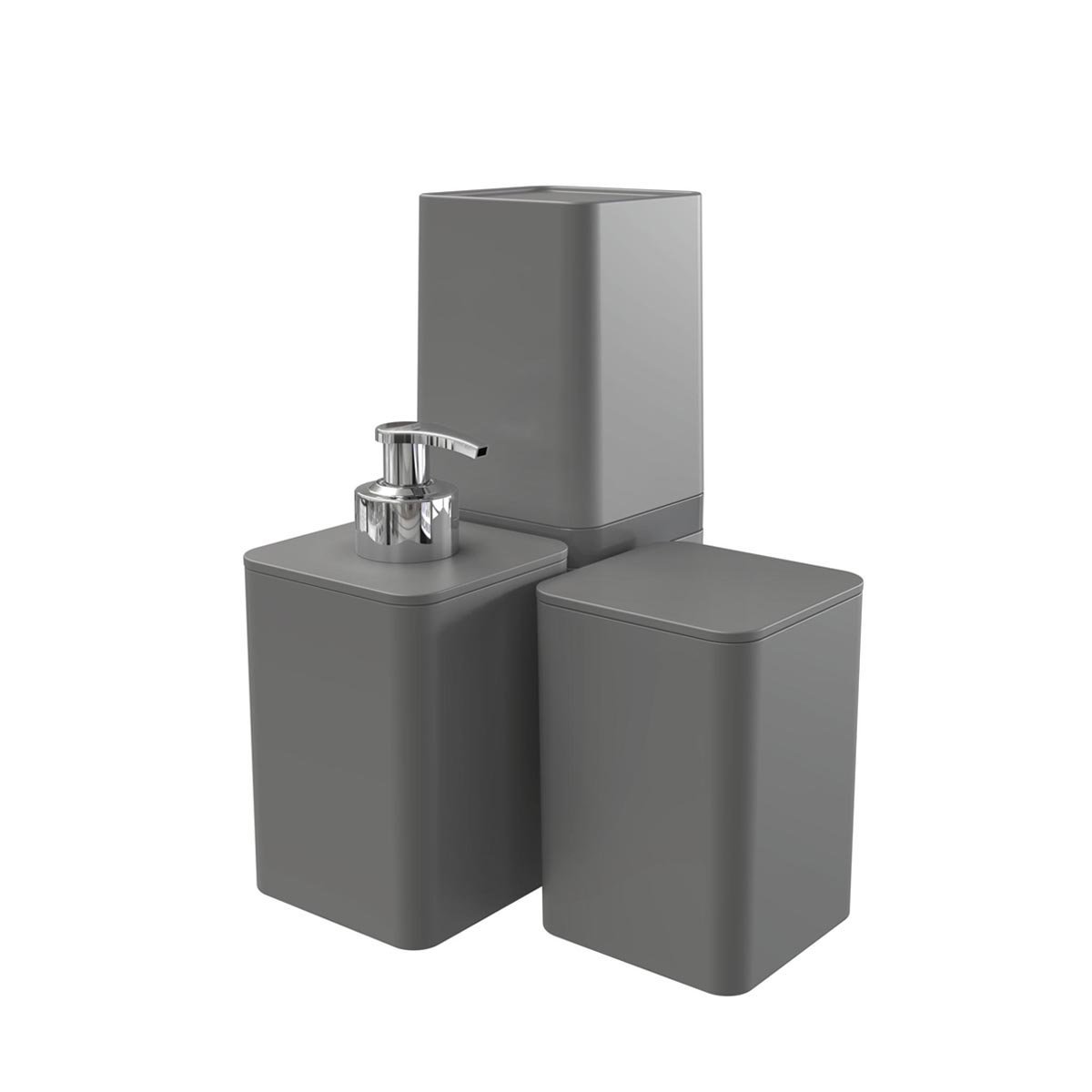 Kit Banheiro Lavabo - Dispenser Porta Escovas Laradore Cinza