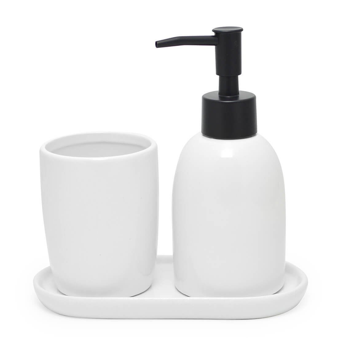Kit Banheiro Lavabo - Dispenser Porta Escova Laradore Branco